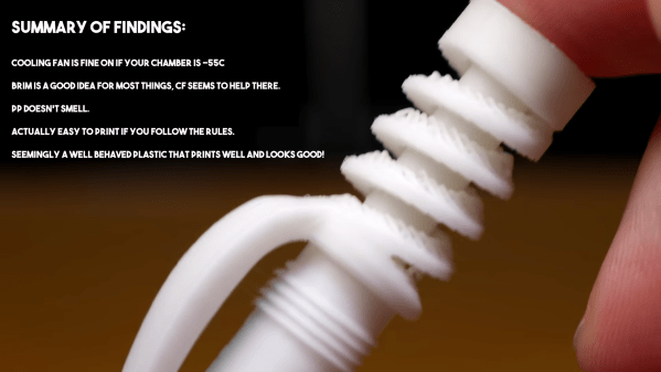 Making nylon plastic from raw chemicals used to be a very common demo; depending where and when you grew up, you may well have done it in high school or even earlier. What’s not common is taking that nylon and doing something with it, like, say extruding it into filament to make a benchy. [Startup Chuck] shows us there might be a reason for that. (Video, embedded below.)