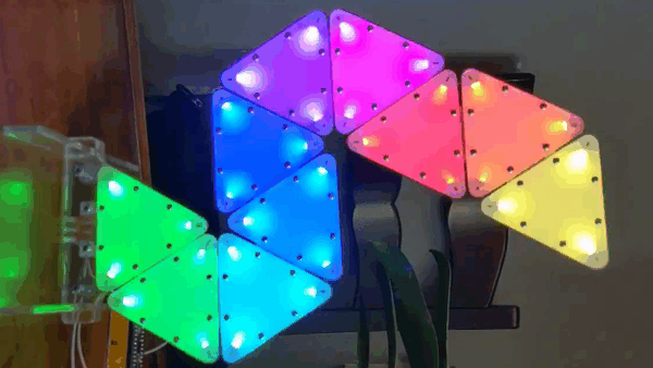 The TriangleLightPanel is a single, triangular, light panel (refreshing when everything is in the name, isn’t it?). Each panel consists of a single white PCBA holding three side-firing SK6812 LEDs aimed inward, covered by transparent acrylic. When the LEDs are doing their thing, the three-position arrangement and reflective PCB surface does diffuses the light sufficiently to illuminate each pane — if not perfectly evenly — very effectively. Given the simple construction it’s difficult to imagine how they could be significantly improved.