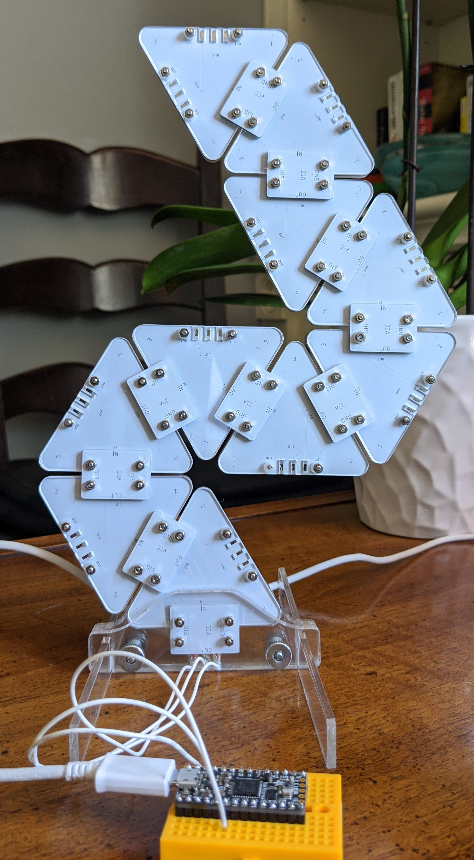 We love to see LEDs combined in all shapes and sizes, so we were especially ticked when we caught a glimpse of [Debra Ansell]’s (also known as [GeekMomProjects]) interlocking triangular TriangleLightPanel system glowing on our screen. This unusually shaped array seemed to be self supporting and brightly glowing, so we had to know more.
