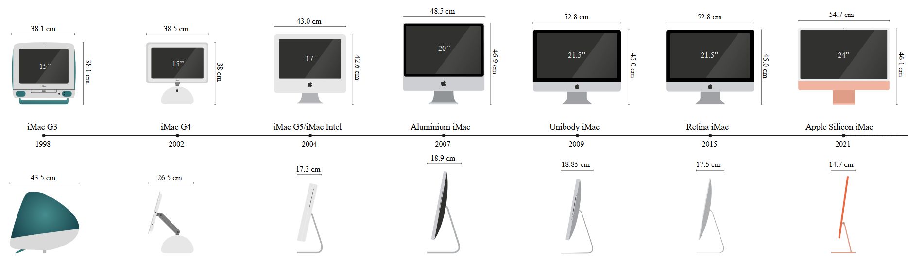 Naturally, it’s not just phones either, but also computers, with the iMac’s evolution showing a clear ‘evolution’ from colorful and bold designs to geometric slabs: