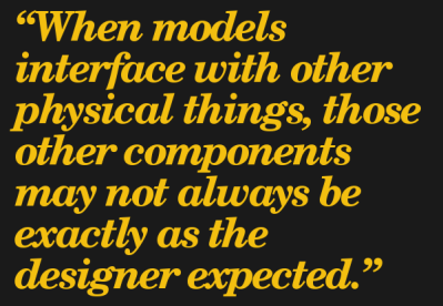 Just as people now regularly design models as separate parts that will 3D print more easily, so too is it helpful to make design decisions that try to allow for changes that are out of one’s control as a designer. Would a model still be useful if mounting hole locations changed? Could a user make fixes or adjustments with only a limited toolset? Is it possible to make the interfacing parts modular for easier adjustment?