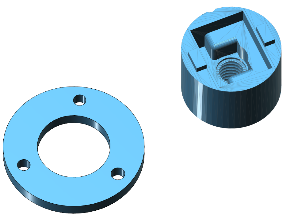 Left: extra spacer modeled from scratch to make a retainer fit. Right: knob with resized threaded section.