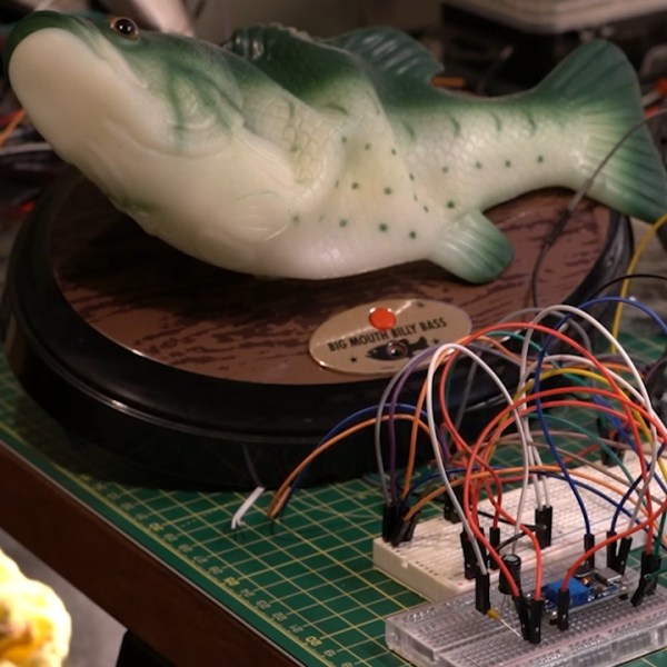 This project comes to us from [Cian] who gutted the fish’s hardware to turn it into a smart voice assistant with some modern components, starting with an ESP32 S3. This chip has enough power to detect custom “wake words” to turn on the fish assistant as well as pass the conversation logic to and from a more powerful computer, handle the audio input and output, and control the fish’s head and tail motors. These motors, as well as the speaker, are the only original components remaining. The new hardware, including an amplifier for the speaker, are mounted on a custom 3D printed backplate.